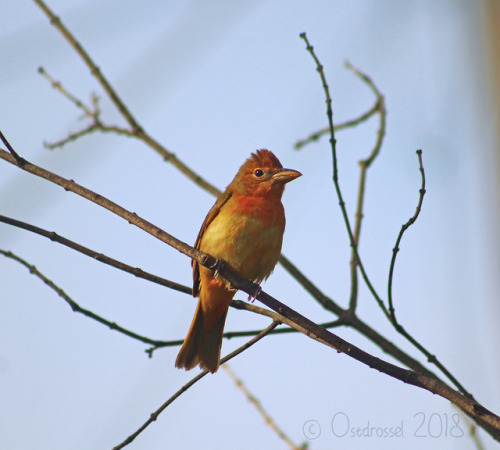 Again, no booth pics, but something amazing happened this morning - I had a Summer Tanager in my yard! When I first saw him, I thought it was a weird female Cardinal or maybe a female Orchard Oriole (because I have never seen one before), but something did not add up. From what I am reading, their range normally does not even reach as far as Michigan, so this was such a cool surprise! What a spring this is!